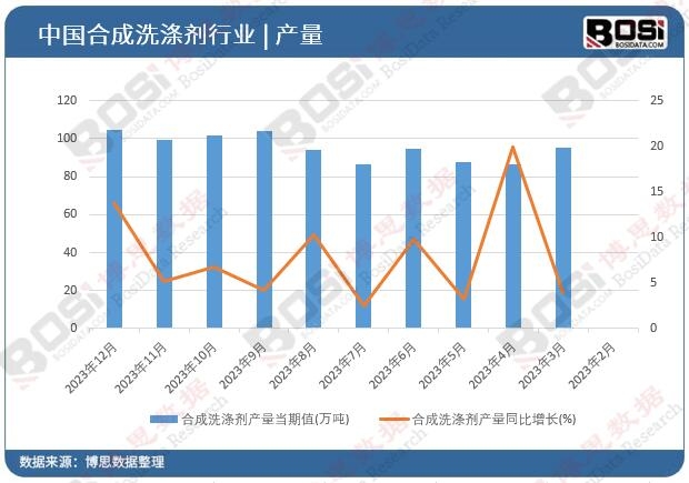 導(dǎo)讀: 據(jù)博思數(shù)據(jù)發(fā)布的《2024-2030年中國合成洗滌劑市場分析與投資前景研究報(bào)告》表明:2023年我國合成洗滌劑產(chǎn)量累計(jì)值達(dá)1106.4萬噸,期末總額比上年累計(jì)增長8.4%。